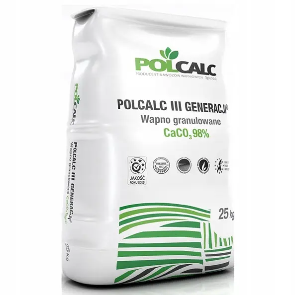 Do wapnowania trawników stosuj grannulowane preparaty zawierające węglan wapnia o: